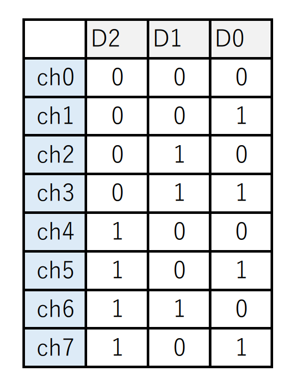 図2の中のD0~D2はチャンネルを指定するのに使用します。具体的には図3のように値をセットします。